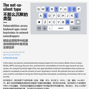 这家实验室分析了百度、荣耀、华为、科大讯飞、OPPO、三星、腾讯、vivo 和小米 9 家厂商的输入法,结果发现,除华为以外八家厂商的手机云输入法均存在严重漏洞。