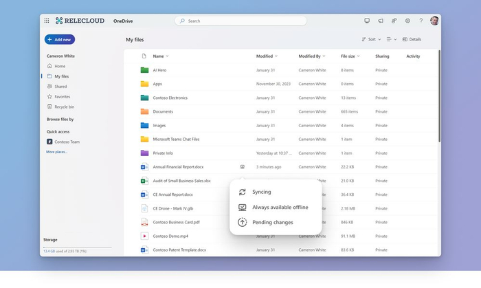 此外网页版 OneDrive 离线模式点开“我的文件”选项之后,可以重命名、排序、移动或复制文件,打开本地存储的文件,并支持编辑保存。用户完成上述操作之后,一旦设备处于联网状态,所有更改都会自动同步到云端。