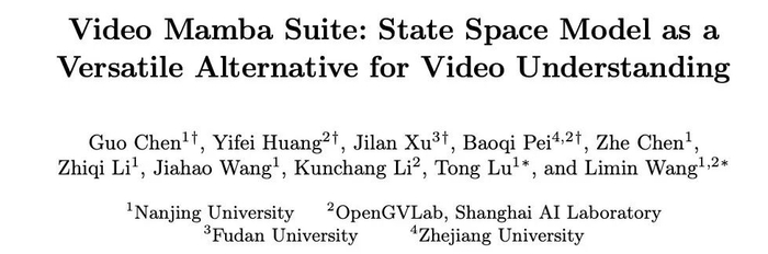 论文标题:Video Mamba Suite: State Space Model as aVersatile Alternative for Video Understanding