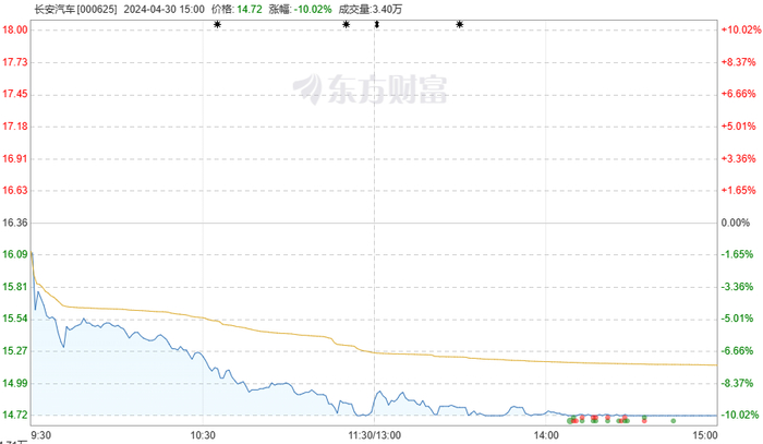 长安汽车Q1实现营收370.23亿元,同比增长7.14%;净利润11.58亿元,同比下降83.39%;Q1销量69.21万辆,同比增长13.9%。净利润骤降,4月30日,长安汽车股价跌停。
