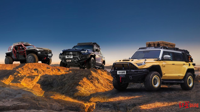 作为面向深度越野用户和专业玩家打造的一款全域机动的豪华电动越野座驾,猛士917蛟龙战甲沿袭了猛士家族“雄魂”设计,将军武风格与中国龙元素相结合,形成“蛟龙战甲”独有的设计创意。猛士917蛟龙战甲采用昂贵的航空级锻造碳纤维材料,在前后金属保杠、前机盖、车顶拓展平台等多处使用,让车身更轻、强度更高。此外,猛士917全系再进化,新增萨普蓝和达古银2款共创车色,整车OTA重磅升级,带来全新座舱HMI体验,同时备胎支架、后拖车钩、全新一代车顶平台、全车电吸门等改装件也已向全系用户开放,即日起,用户登录猛士科技APP即可进行选装。