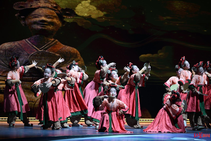 在舞蹈中,小姑娘们以灵动的舞姿和流畅的动作,生动再现了执镜俑所蕴含的历史韵味,镜子相互映照,光与影交织出一幅幅流动的画面。观众席上传来阵阵赞叹,大家纷纷掏出手机,记录下这精彩的一幕。