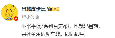 小米平板7即将发布 全系适配小米SU7 可即插即用