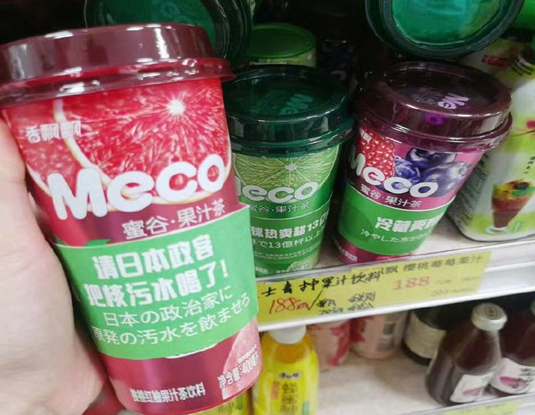 近日,有网友晒出在日本商店售卖的香飘飘旗下Meco果汁茶,其产品包装上印有嘲讽核污水排海的标语。从社交媒体上的信息看到,产品包装上印有中文和日文的标语,内容包括“无耻”“0.1%的土地污染了70%的海洋”“可以没有日本不能没有海洋”“海洋不是日本的下水道”等。