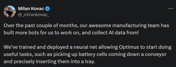 对此,特斯拉 Optimus(Tesla Bot)工程师 Milan Kovac 对 Optimus 的更多训练细节进行了解读。