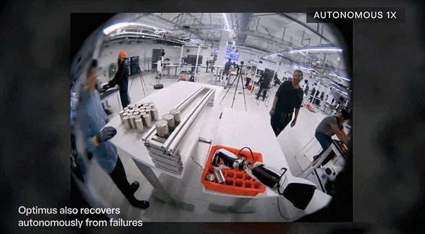 虽然目前 Optimus 还不完美,速度还有点慢,但我们看到了越来越高的成功率和越来越少的失误。特斯拉还训练 Optimus 从失败案例中恢复,并看到了自发的校正发生。