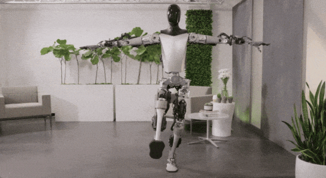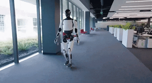 当然,Optimus 现在可以在定期绕着办公室行走,不仅走得更快,走的距离也越来越远了。