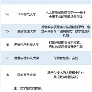 近日,教育部发布通知,公布首批18个“人工智能+高等教育”典型应用场景案例,来自北京大学、清华大学、北京邮电大学、西安电子科技大学、浙江大学等18所高校的人工智能实践案例入选。根据名单,这些案例既有英语、物理、编程等学科教育,也有传统文化、智慧实验室等素质教育内容,还涉及了智慧教学系统、学业预警等智慧教育实践。