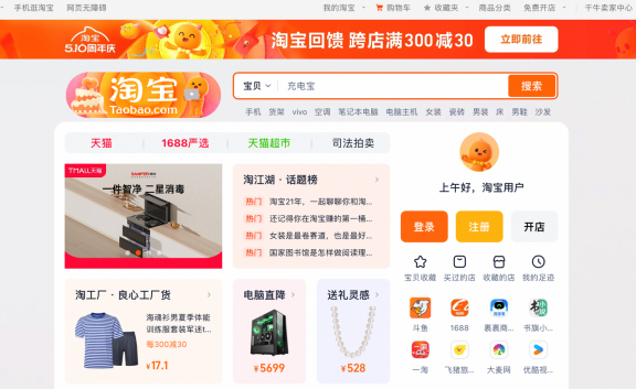 此次淘宝网宣布升级,正值淘宝创立21周年之际,淘宝510周年庆活动也在淘宝网页端上线,推出不同于手机淘宝的“电脑专场”,方便网页版用户优惠选购电脑及配件。5月9日淘宝网还将上线答题免单活动。
