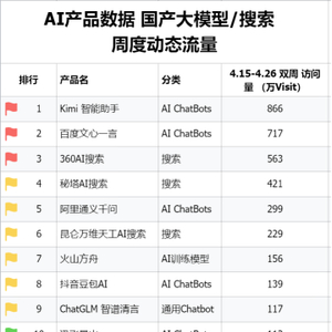 该网站近期数据显示,五一假期前后,360AI搜索用户访问量快速增长,国产AI应用访问量已位列第一。综合近期多个AI应用榜单数据,Kimi智能助手、文心一言以及360AI搜索已稳居前三,国产AI应用形成三巨头格局。