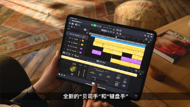 Logic Pro 2音频软件“比以往更智能”,拥有基于AI的录音室助手功能,苹果在这添加了新的贝斯和键盘效果,以及Stem Splitter用于提取单个音频录音中各个部分的作品。后者可以让艺术家将混合音频分成不同的部分:鼓、贝斯、人声和其他乐器。分离音轨使应用效果、添加新部分和更改混音变得更加容易。用户还可以调出更好的音调,并从五种不同的饱和度风格中进行选择,为曲目添加温暖感、临场感或冲击力。