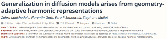 本文对图像扩散模型的泛化和记忆方面进行了重要的深入分析。作者通过实证研究了图像生成模型何时从记忆输入切换到泛化模式,并通过几何自适应谐波表示与谐波分析的思想建立联系,从架构归纳偏差的角度进一步解释了这一现象。本文涵盖了我们对视觉生成模型理解中缺失的关键部分,对未来研究启发巨大。