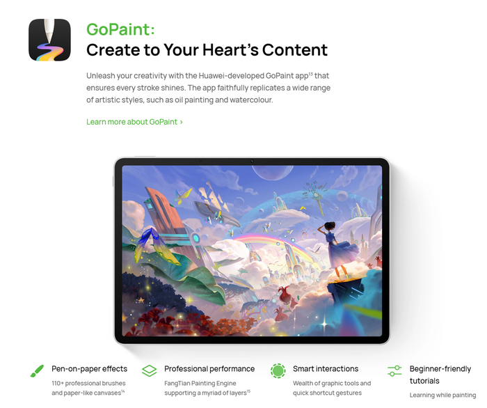 新款 MatePad 平板电脑还首发搭载华为天生会画(GoPaint)应用。