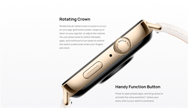 ID设计上,华为Watch Fit 3延续了家族式小方表盘设计,但屏幕边框更窄,看上去更加方正,再配上金属旋转表冠,神似Apple Watch。