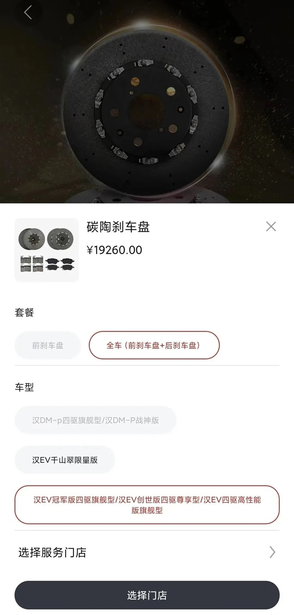 刚好有这么个例子,比亚迪汉可以选装碳陶瓷刹车盘,但一台 20 多万的车子,花近 1/10 的价格换四个感知不明显的碟子,给你你会买吗?