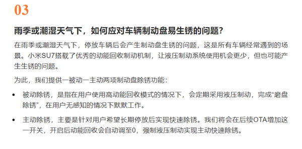 小米也回应了,将在之后 OTA 一个 “ 主动除锈 ” 开关,强制使用传统刹车实现快速除锈。