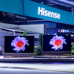 在国内市场,海信电视的大屏化领先优势同样明显。奥维云网数据显示,今年一季度国内100英寸以上大屏电视的销量同比增长超过300%。海信系电视在百吋及以上电视的零售量、零售额占有率均超市场三分之一,分别为36.98%、42.96%,以明显大份额体现 “百吋领航”态势。同时,海信系电视在高端市场份额不断提升,2024年第一季度线上高端销售量占有率达31.63%,同比提升5.89个点,线下高端销售量占有率达43.03%,同比提升7.71个点,线上、线下高端销售量占有率均居行业第一,且占有率增幅均居行业首位。