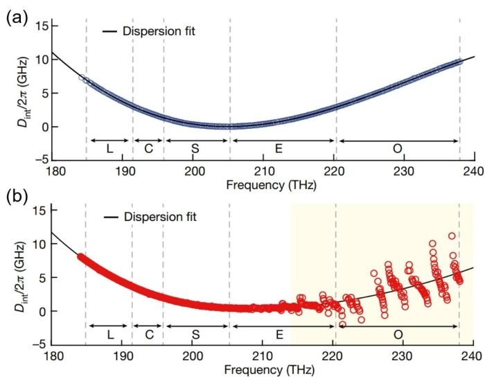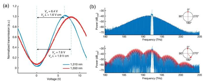 论文共同通讯作者、中国科学院上海微系统所欧欣研究员表示,研究团队采用基于“万能离子刀”的异质集成技术,通过氢离子注入结合晶圆键合的方法,制备了高质量硅基钽酸锂单晶薄膜异质晶圆,随后进一步联合开发出超低损耗钽酸锂光子器件微纳加工方法。结合晶圆级流片工艺,研究团队探索发现,钽酸锂光子芯片不仅展现出与铌酸锂薄膜相当的电光调制效率,同时兼具片上实现孤子光学频率梳的独特属性,有望在激光雷达、精密测量等方面实现应用。