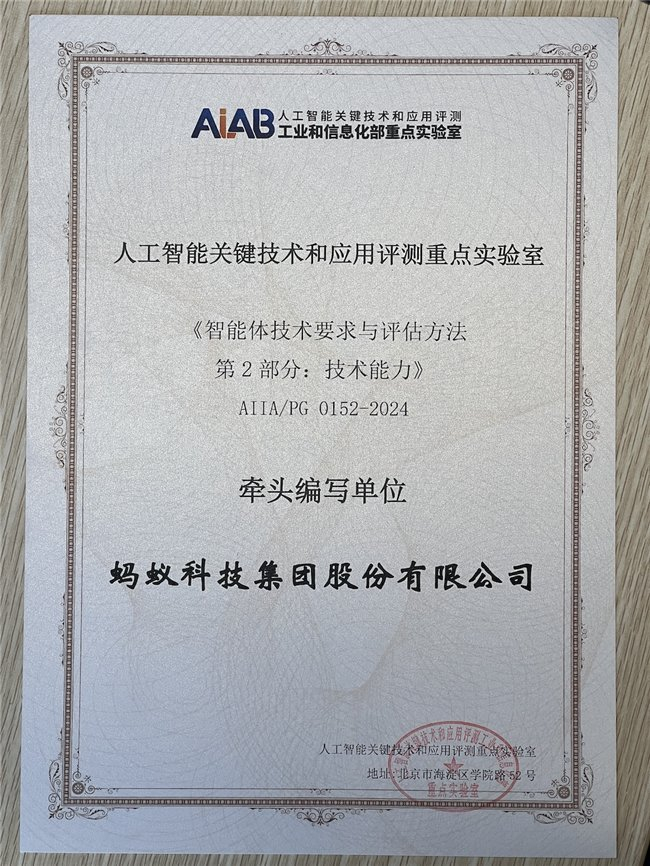近日,由人工智能关键技术和应用评测工业和信息化部重点实验室、中国信通院人工智能研究所共同主办的“人工智能+”高质量发展研讨会顺利召开。会上,中国信通院正式发布了国内首批智能体三项标准。其中,蚂蚁集团作为核心参编单位参与了三项标准的研制,并牵头承担了第二项“技术能力”标准的编制。