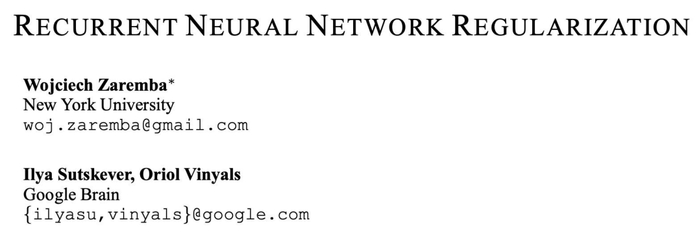Ilya 还推荐了由纽约大学 Wojciech Zaremba(OpenAI创始团队成员)和 Ilya Sutskever 本人 2015 年发表的论文《Recurrent Neural Network Regularization》。当时,Ilya 还是谷歌大脑的研究科学家。