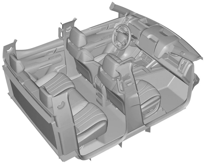 截至目前,官方仍未放出新车的内饰照片及动力信息。而该车的座舱专利图显示,新车将配备尺寸较大的 HUD 抬头显示,整个中控台上拥有多处储物空间。