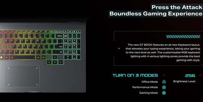 GT Book 笔记本电脑重 1.99kg、厚 18.9mm,最高搭载酷睿 i9-13900H 处理器与 RTX 4060 独立显卡,整机性能释放 115W:
