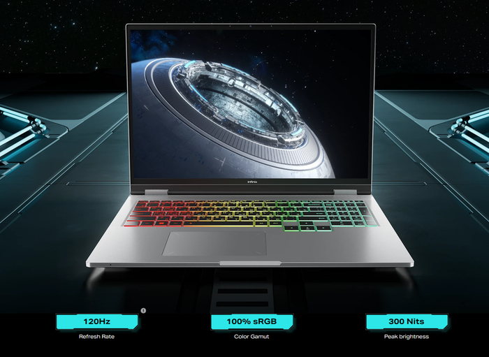 屏幕方面,Infinix GT Book 搭载一块 16 英寸 16:10 120Hz IPS 屏幕,覆盖 100% sRGB 色域,亮度 300 尼特。