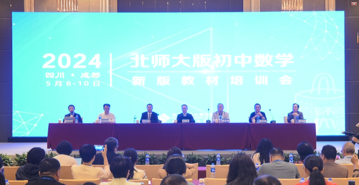 5月9至10日,北师大版初中数学新版教材培训会在四川省成都市召开。此次会议由北京师范大学基础教育教材编委会、北师大版初中数学教材编写组和北京师范大学出版集团主办,来自全国20多个省(自治区、直辖市)近100个地市的600多位高校教师、中学教研员,以及一线教师现场参会,超过3万数学教育工作者在线学习。本次培训会围绕新课程、新教材理念在教学中的实施展开。