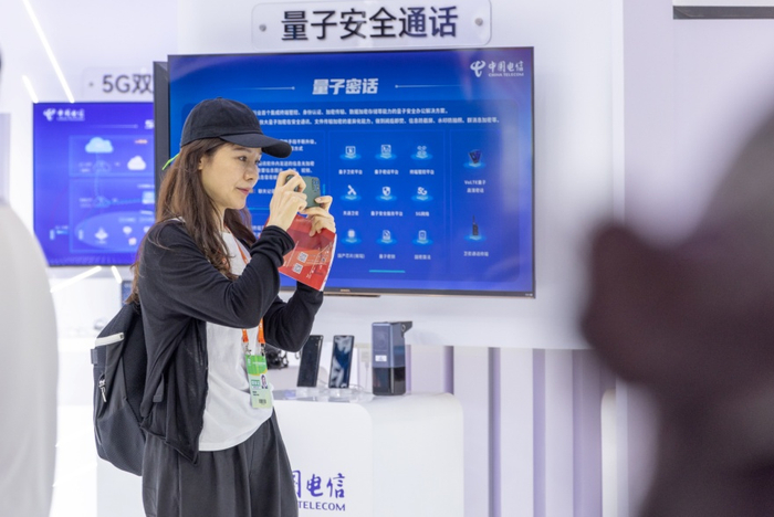 神秘的量子技术,距离我们有多遥远?在中国电信展台,观众不仅可以“看”到用于量子安全组网的一系列关键设备的“庐山真面目”,还能“听”到经过量子加密的语音,亲身体验安全等级超高的量子密信、量子加密对讲等业务。