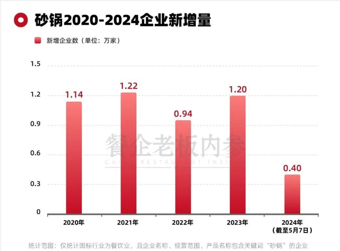 无论是从2020年开始,按照年度新增量进行分析;还是从2023年1月开始,盘点过去十几个月的砂锅新增门店数,砂锅新增企业量都是那么不温不火。在企业新增数据层面分析,难以看到“翻红”的例证。