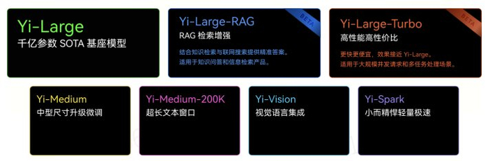 其中,千亿参数规模的 Yi-Large API 具备超强文本生成及推理性能,适用于复杂推理、预测,深度内容创作等场景;Yi-Large-Turbo API 则根据性能和推理速度、成本,进行了平衡性高精度调优,适用于全场景、高品质的推理及文本生成等场景。