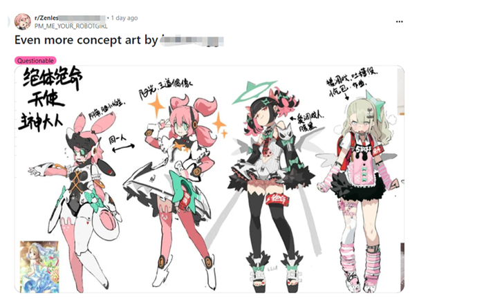 上面这两张角色设定图就是官方在回应本次事件时主动公布的,和被泄露的部分相比,明显有着更多细节和更高的完成度,对此官方的解释是:“与其遮掩,不如痛快公开。”