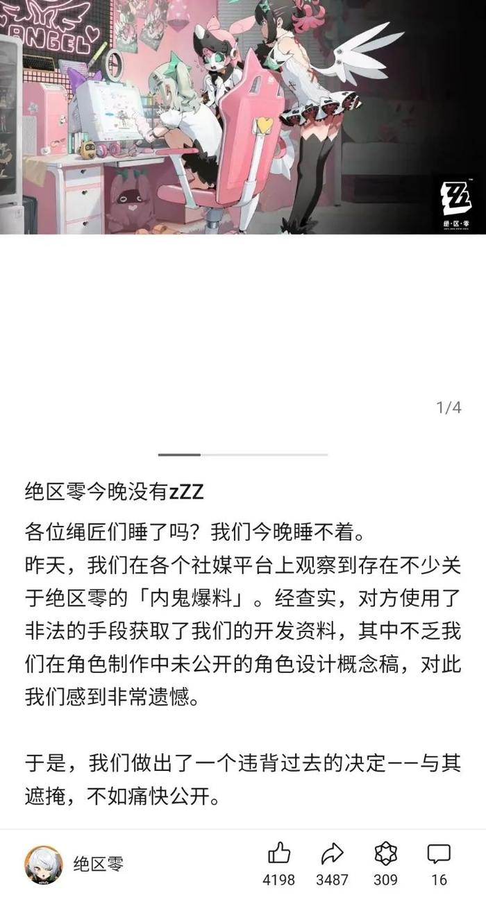 这次的泄露事故,绝区零的官方团队就采取了一个和之前截然不同的处理方法——正面回应内容遭到泄露,而非只是针对传播泄露内容的帖子进行打击处理。