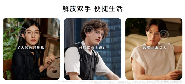 去年9月,华为智能眼镜2光学镜系列发布,带来“钛空”、“金丝”等5种时尚款式,掀起智能眼镜时尚新潮流。好看也好用,眼镜采用开放式声学设计,支持11小时音乐播放,还有智慧播报、颈椎健康监测[2]等智慧功能,带给用户个性便捷、聆听自由、智慧贴心的全场景交互体验。据《IDC中国可穿戴设备市场季度跟踪报告》报告显示,华为智能眼镜近3年[3]蝉联中国音频眼镜市场出货量第一!
