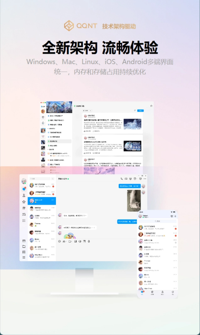 IT之家 5 月 16 日消息,2023 年 6 月 27 日,手机 QQ 安卓 8.9.63 / iOS 8.9.65 发布,这是手机 QQ 首个基于 NT 架构的正式版,2023 年 7 月 3 日,NT 架构 Windows QQ 上架官网,跨平台三端重构正式统一。腾讯开发者何金源今日发文,介绍了手机 QQ 技术架构升级背后的技术故事。