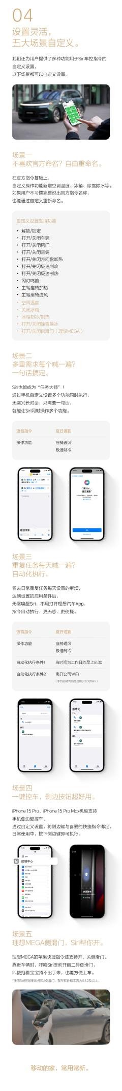 操作方式也十分简便,车主只需通过唤醒Siri并说出官方指令名称,例如“理想汽车解锁”,即可实现远程控车。