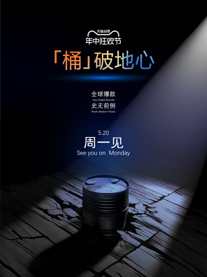 5月19日,天猫官方发布“王炸”预告,“‘桶’破地心”、“史无前例”重磅发布,周一5.20见。