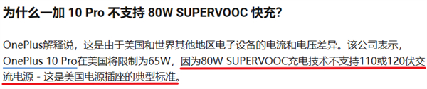 原因也很简单,因为一加的 80W SUPERVOOC 闪充不支持 110V 或者 120V 交流电。