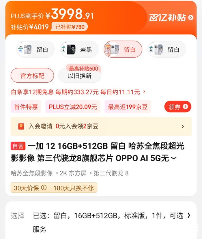 一加12在618期间迎来了降价。京东方面提供了最高800元的优惠,16GB+512GB大存储版本入手价仅3999元。与此同时,高性能定位的一加Ace 3也迎来了最高400元的降价,2199元即可入手。