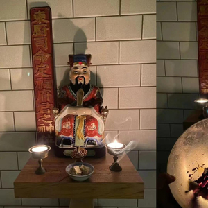 在英国伦敦家中,扶霞·邓洛普把厨房里原来预留给微波炉的位置变成了神龛,这里放有一尊灶王爷神像,立有一块“东厨司命定福府君之神位”的牌子,香蜡皆全。