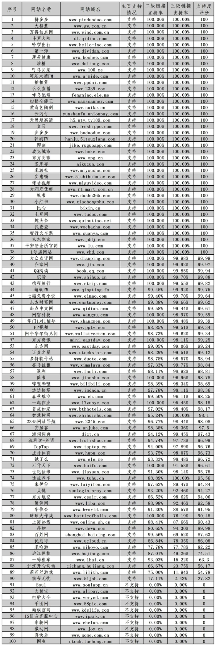 图虫、真快乐、激动网、车轮网、IS语音客服中心、顽娱官网、千图网、电驴大全、支付宝、Soul等10个网站首页尚不支持IPv6访问,网站运营主体需强化主体责任落实,加快完成升级改造。(主要商业网站IPv6支持情况监测结果详见附表2)