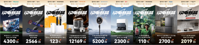 品牌商家每年都会推出众多新品,登上榜单的绝大多数新品均是在京东首发即卖爆的爆款单品,这其中离不开京东家电家居今年对新品的大力扶持。为了帮助商家更好地推新打新,今年京东推出了营销IP“闪电新品”,整合全域资源、给予品牌扶持、帮助商家新品从首发打爆再到持续热销。仅今年4月,京东家电家居联合海尔、美的、华为、小米、九阳、全友等品牌首发的20余款新品中,就有10款创下历史纪录,更有9款一跃全网领先,成为行业瞩目的焦点。首发即爆,不断刷新销量纪录。