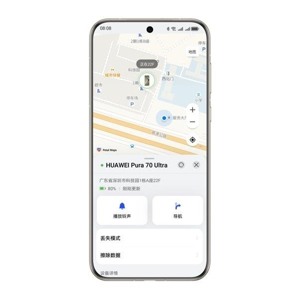 值得一提的是,今年的华为Pura 70系列还搭配华为云空间推出了首个“楼层级设备查找”功能,可以精确定位到设备的楼层信息。