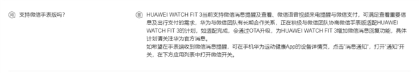 如适配完成,会通过OTA升级为华为WATCH FIT 3增加微信消息回复功能。