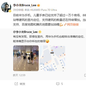 华为李小龙:华为手机、儿童手表支持超 1 万个商场、88 个机场等建筑室内定位