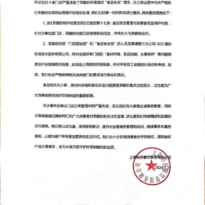 2、茉酸奶总部“门店营运部”和“食品安全部”的人员及聘请第三方公司-SGS 通标标准技术服务有限公司,将对全国所有门店的“食材存储、食品效期、水果保存”等问题再度进行全面细致的检查,实现线上周报和月报核查,并对所有员工定期进行培训和考核。后续,我们也会严格按照相关政府部门的要求进行落实和跟进。