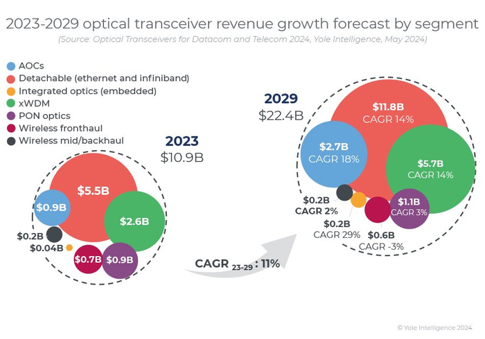 YOLE:2024年,数通光模块市场将同比增长45%