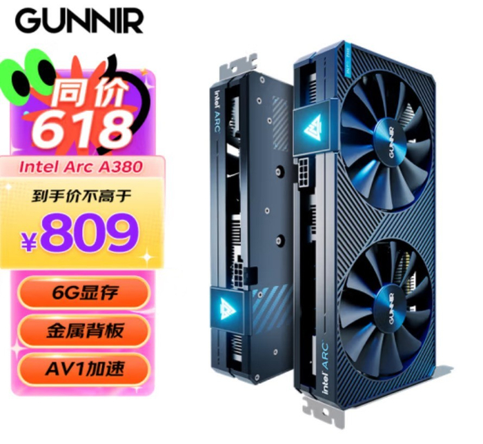 目前,蓝戟intel ARC A380 PHOTON京东到手价不高于809元,可以说是预算有限的入门级玩家不可多得的选择。