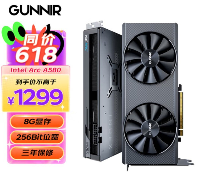 目前,蓝戟 intel ARC A580 INDEX京东到手价不高于1299元,适合打算在1080P与2K分辨下进行游戏的朋友们选择。