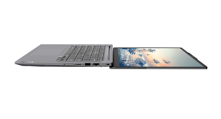 ThinkBook 14+ 2024依然坚持经典的灰银撞色设计,采用高端的喷砂处理,机身坚固耐用。四面窄边框的设计使得屏占比达到了90%以上,视觉体验十分出色。机身重量约1.4公斤,厚度控制在16.9毫米以内,在保障高性能的同时依旧保持了轻薄便携。